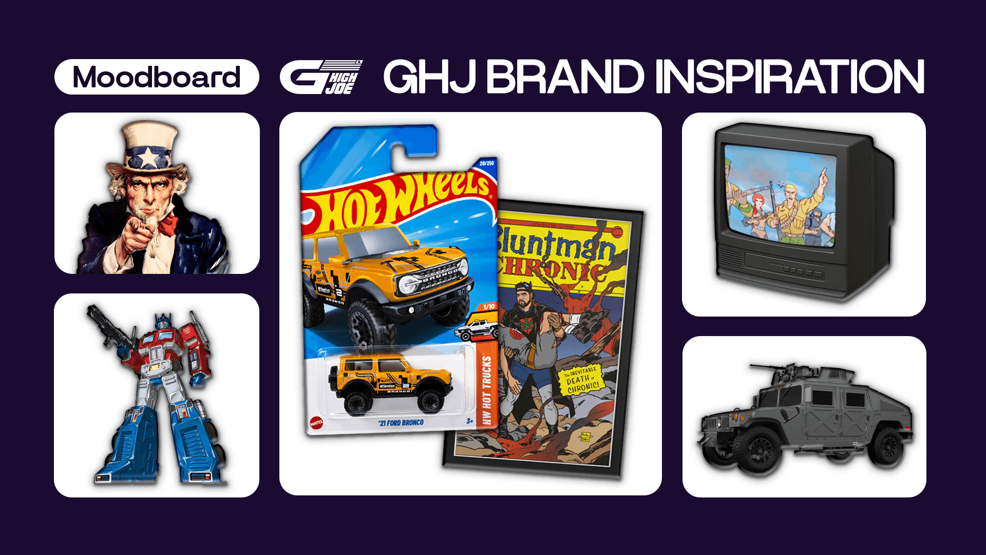 When Joe sought my services, he came to me with only his unique project name… G High Joe. Joe didn't know where to begin when it came to developing his brand, except that he wanted GHJ to be represented with designs that reflected his humorous nature and bold patriotism. It was my goal to develop a brand aesthetic that took a playful approach that sent the message that GHJ was a distinctly American company in support of veterans.